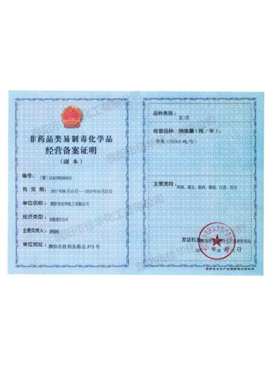 • 易制毒經營備案許可證正本